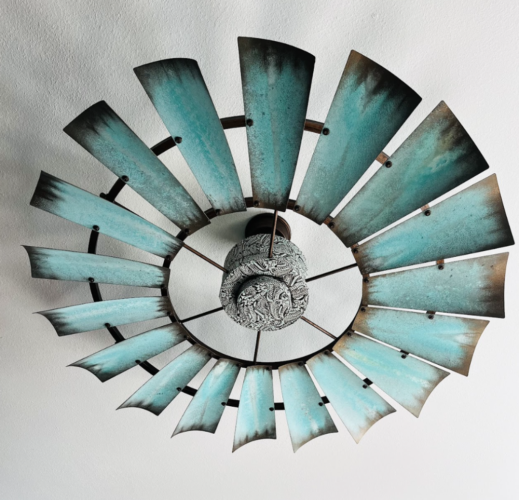 Each Montana Sky Windmill Ceiling Fan blade is meticulously hand-painted, beginning with our Weathered Texas Turquoise finish.
