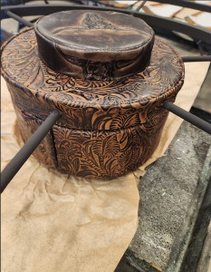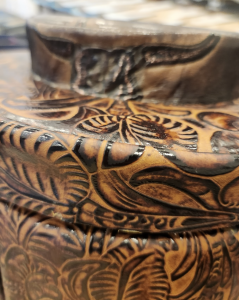 The stunning custom brown floral embossed leather motor and longhorn detail adds a touch of bonus flair while keeping things cool and stylish.