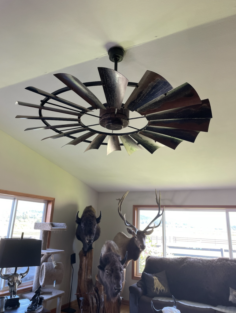 This level of personalization enables homeowners to create a living space that truly reflects their individuality and style, including specific symbols, ranch brands, and family logos of significance. Additionally, for those seeking a statement piece for commercial spaces like restaurants, boutique hotels, or lodges, the custom leather or cowhide Windmill Ceiling Fan offers a distinctive ambiance that leaves a lasting impression on visitors!