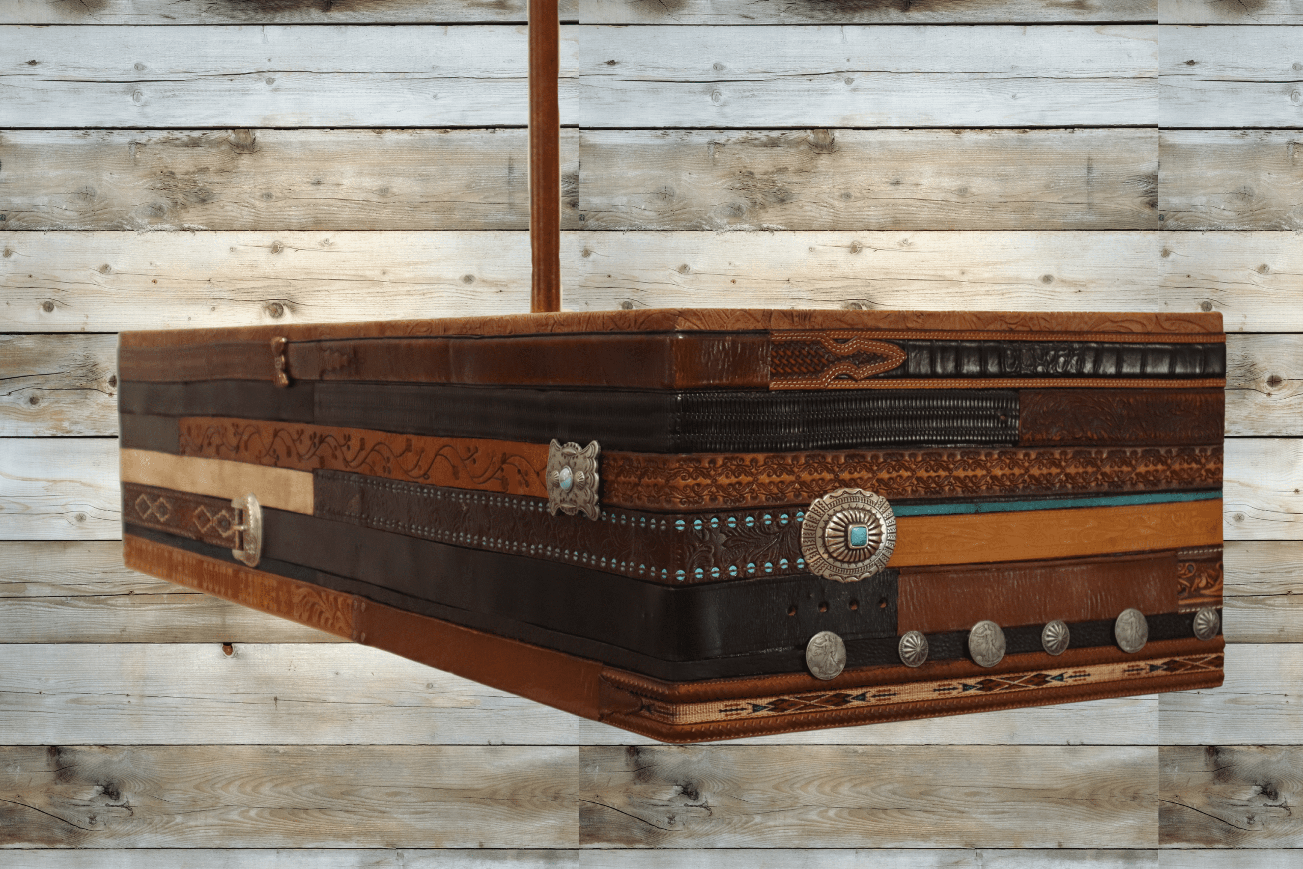 The Duke Chandelier captures the untamed spirit of the American West and transforms it into a piece of heirloom-quality artistry. Handcrafted in Texas, this chandelier is built from authentic Western belts, vintage buckles, hand-tooled leather, and gleaming silver conchos, each one telling a story of craftsmanship, character, and legacy.